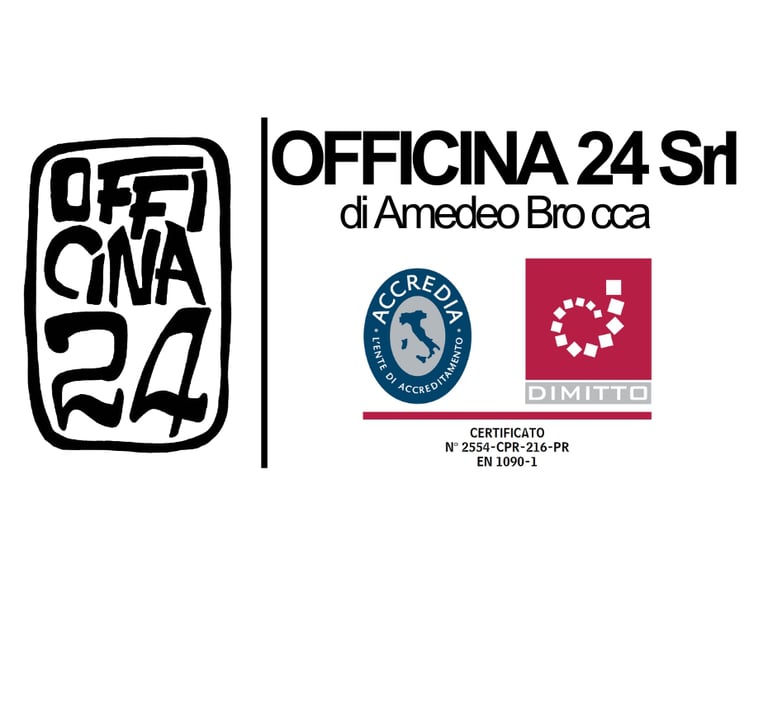 Officina 24 S.r.l. è certificata per la produzione di componenti strutturali in acciaio e alluminio con marcatura CE, garanzia di qualità, sicurezza e conformità alle direttive europee